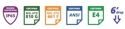 MIL-STD-810G, IP65 and MIL-STD461G standards